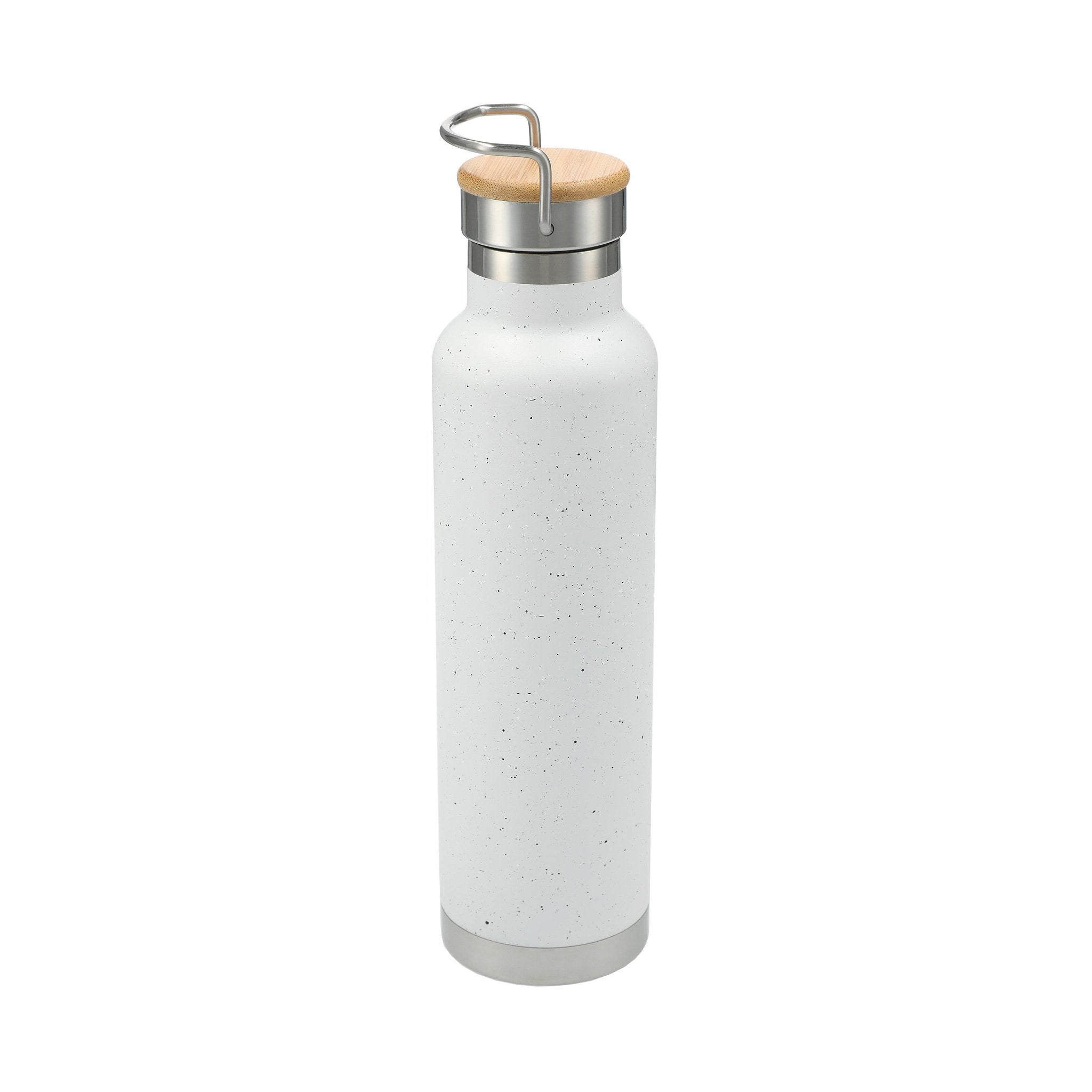 Stay hydrated in style with the Custom 22 oz. Speckled Thor Copper Vacuum Insulated Bottle. Crafted from durable 18/8 grade stainless steel and accented with natural bamboo, this bottle combines rugged durability with sophisticated design. Its copper vacuum insulation ensures that beverages stay hot for up to 12 hours or cold for up to 48 hours, making it the perfect companion for long days out or just daily commuting.