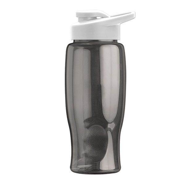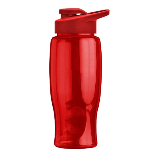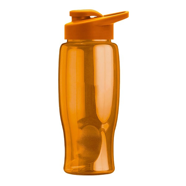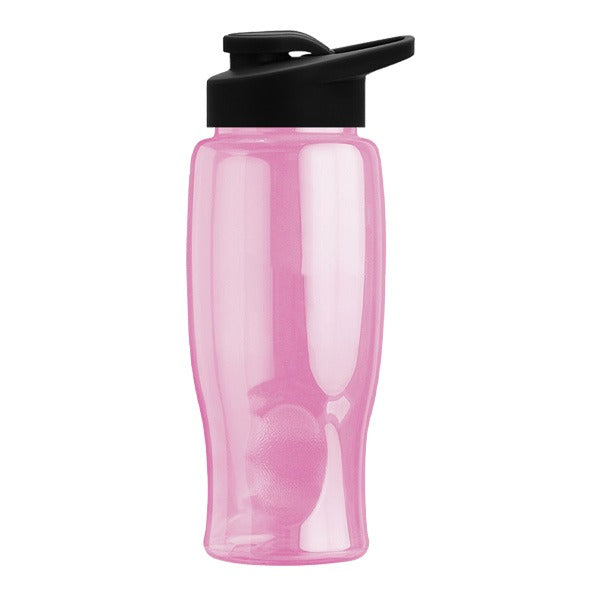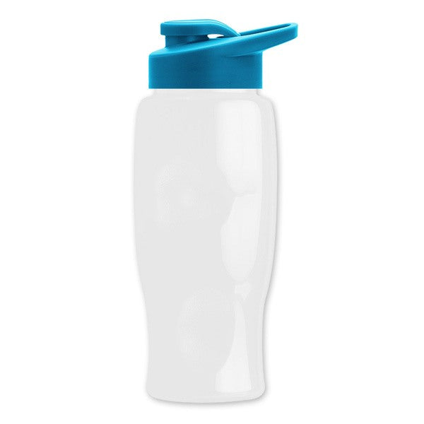 - 27 oz Transparent Sports Bottles with Drink Thru Lid have a contoured, tapered base to fit auto cupholders