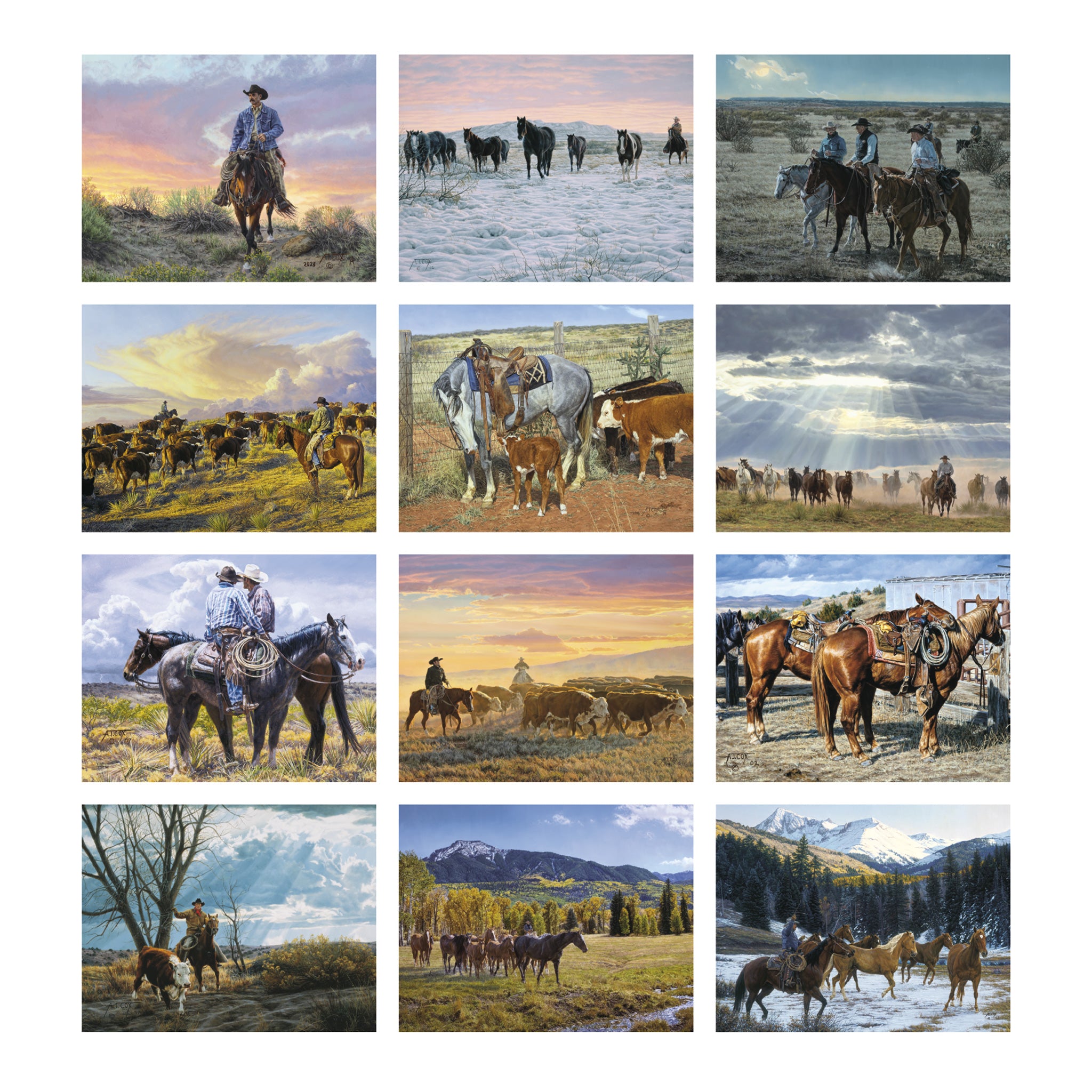 - Renowned artist Tim Cox brings the American West to life in this calendar.