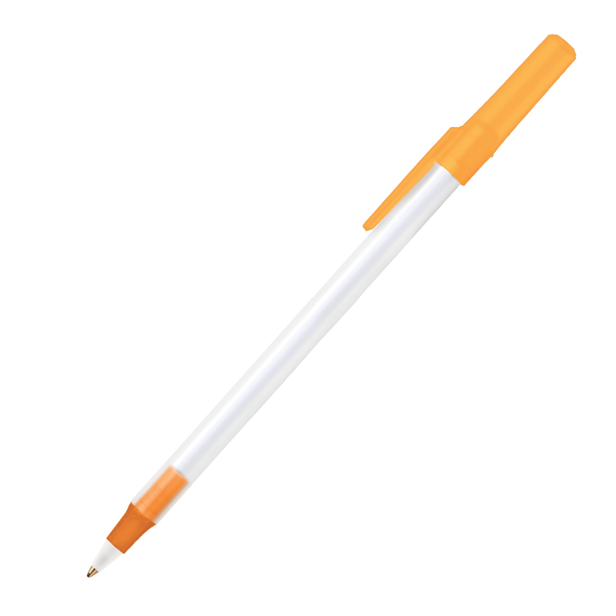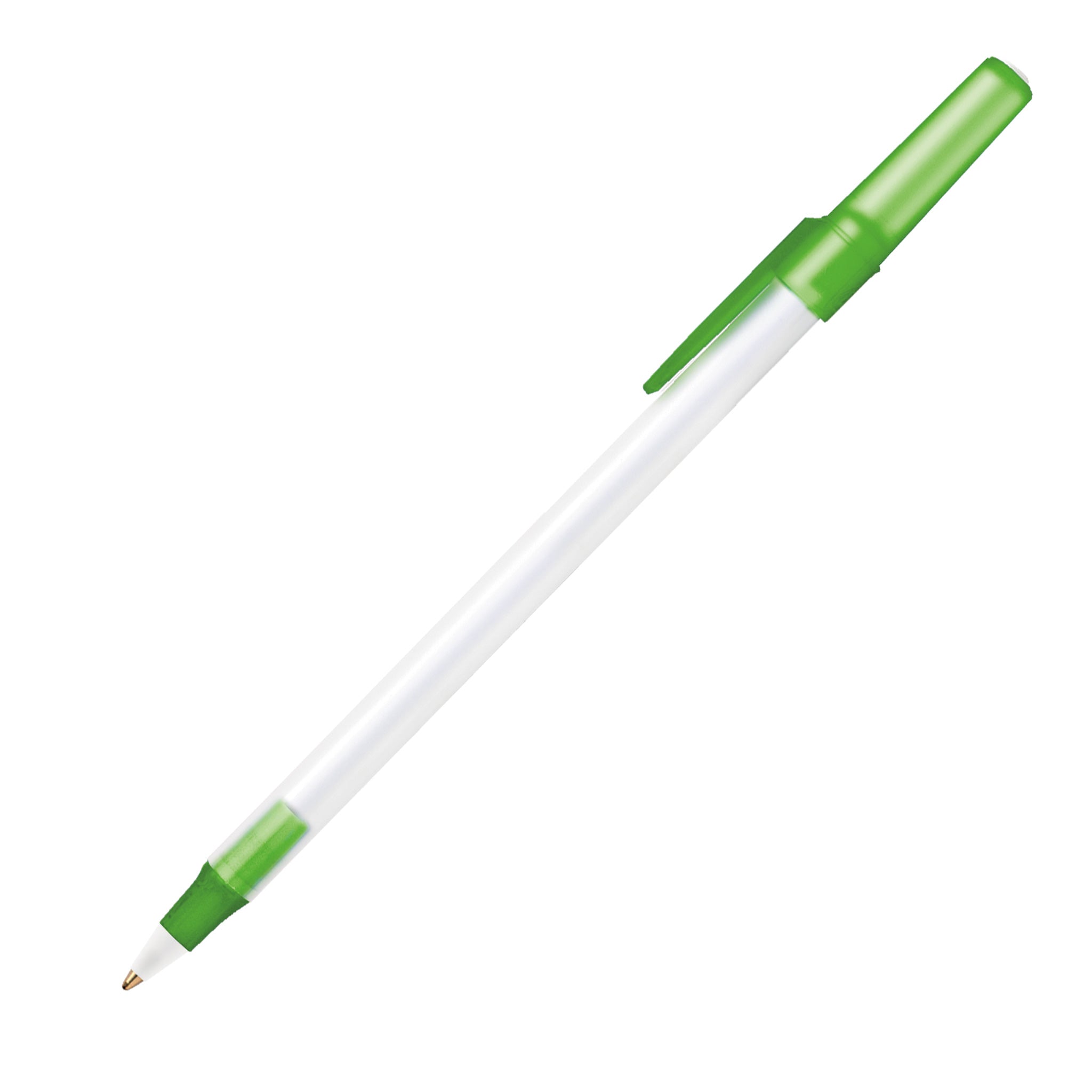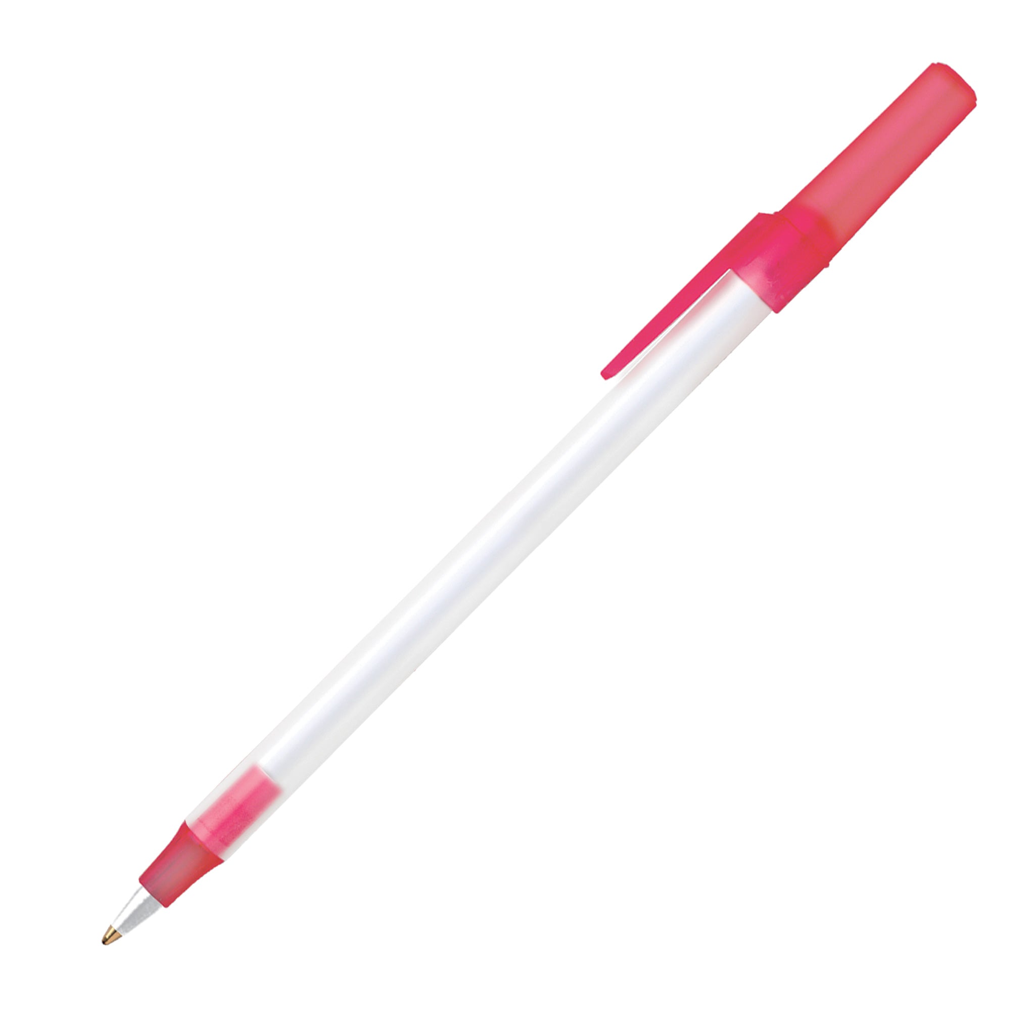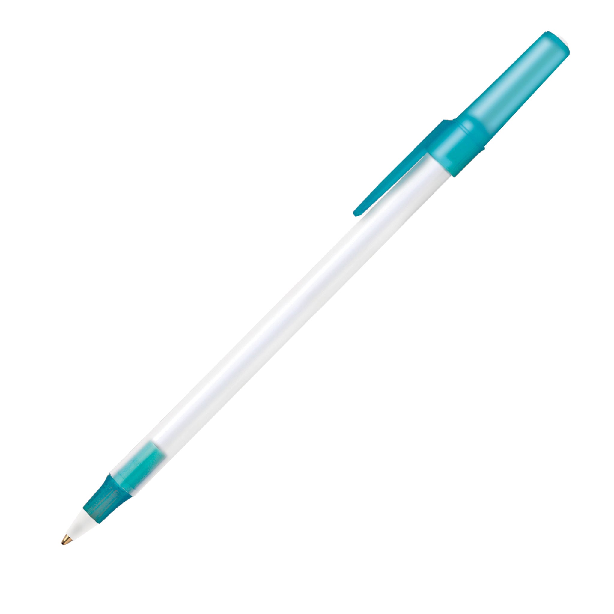 Relax, chill, and let your promotional pen do the talking! The Bic Round Stic Ice pen's frosted trim colors perfectly complement its frosted clear plastic barrel. It comes in black medium ink and is always in stock. Add your logo on this pen's barrel and hand it out at tradeshows, advertising or awareness campaigns, or to employees and customers as a token of appreciation.