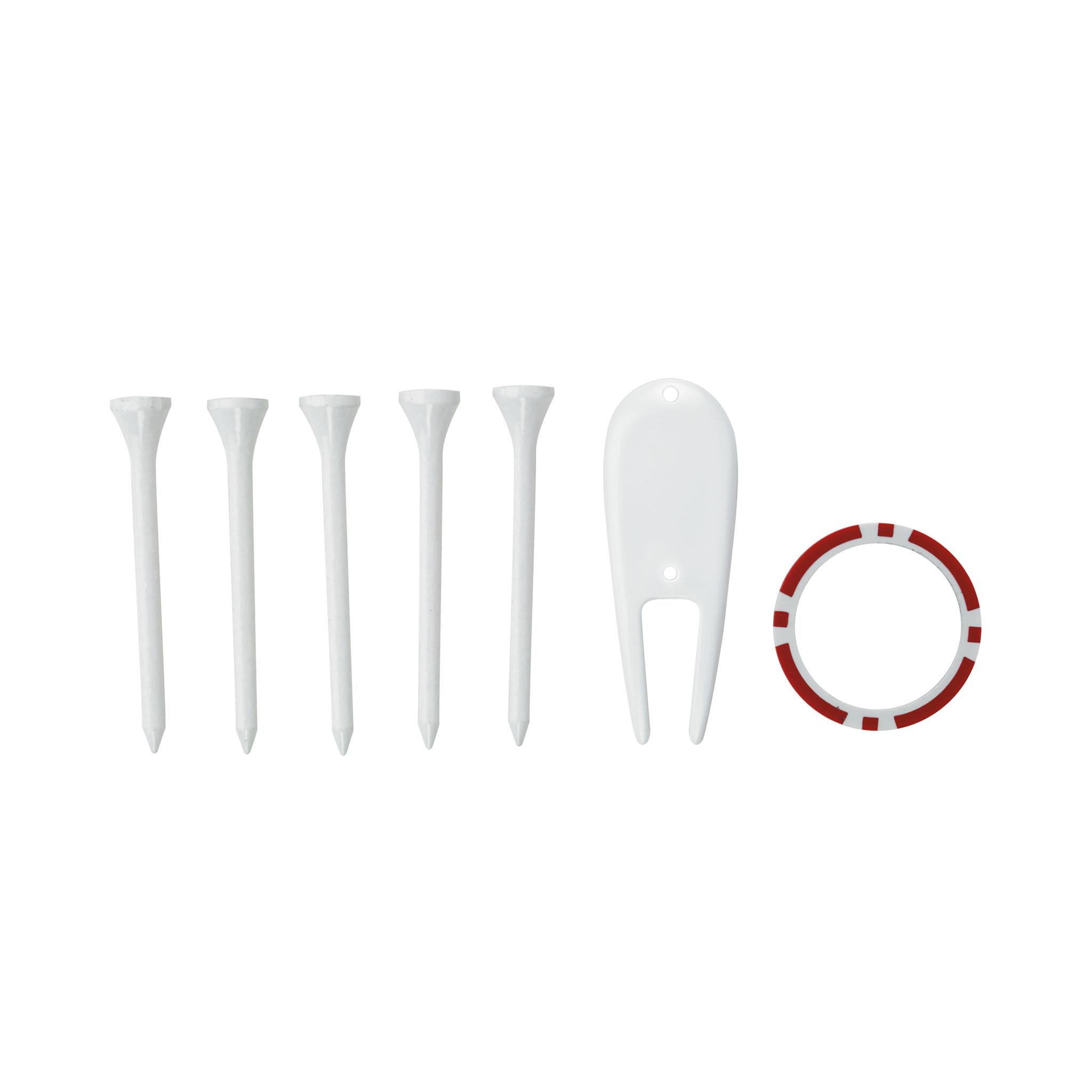 Includes 2.75" wooden tees, ball markers, and a divot repair tool, providing everything a golfer needs for a smooth game. - Compact and Lightweight Design: