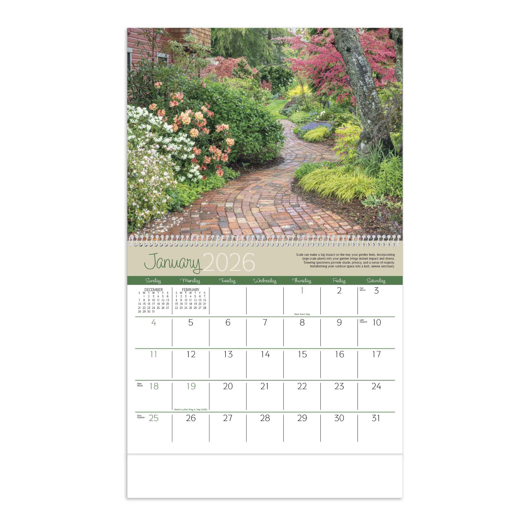- Beautiful Garden Imagery: Each month features vibrant, high-quality photos of gorgeous gardens, inspiring tranquility and creativity.
