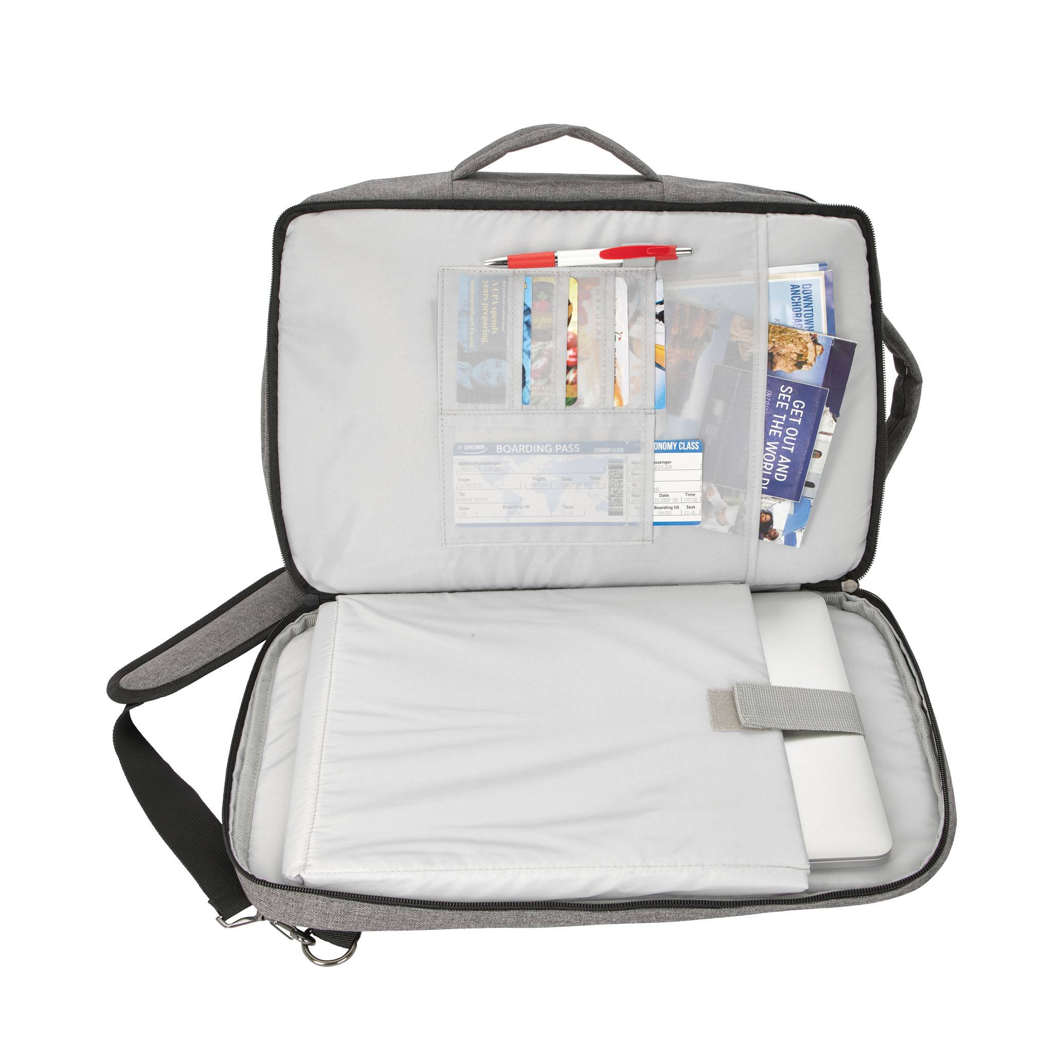 Crafted from durable polyester, it features multiple compartments to keep essentials organized, while its convertible design allows you to switch effortlessly between a briefcase and backpack. With multiple imprint options, your logo will stand out in meetings, conferences, and corporate events.