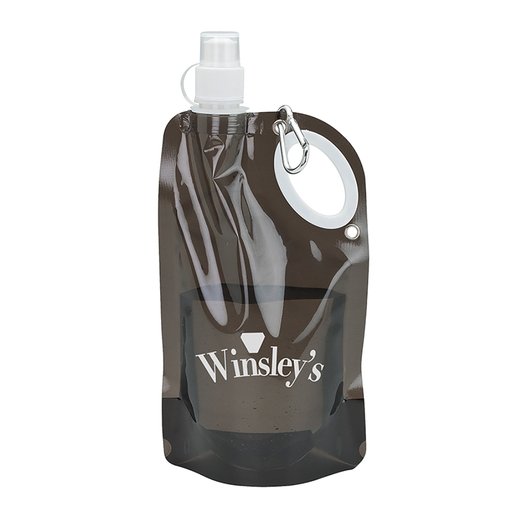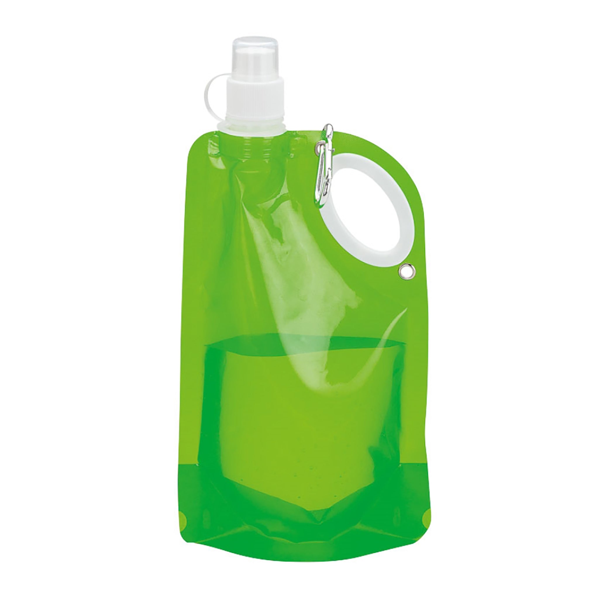 Hand out some refreshments with this affordable reusable PE water bottle! This plastic water bottle can be flattened or rolled for easy storage, and can hold up to 25 oz of your favorite drink. It features an integrated carry handle and pull drinking spout, and includes a security strap on its cap and a 50mm aluminum carabiner. It comes in different eye-catching colors and can be personalized with an imprint of your logo or brand. It's ideal for tradeshows, outings, outdoor and sports events, fundraisers, campaigns, and charity functions.