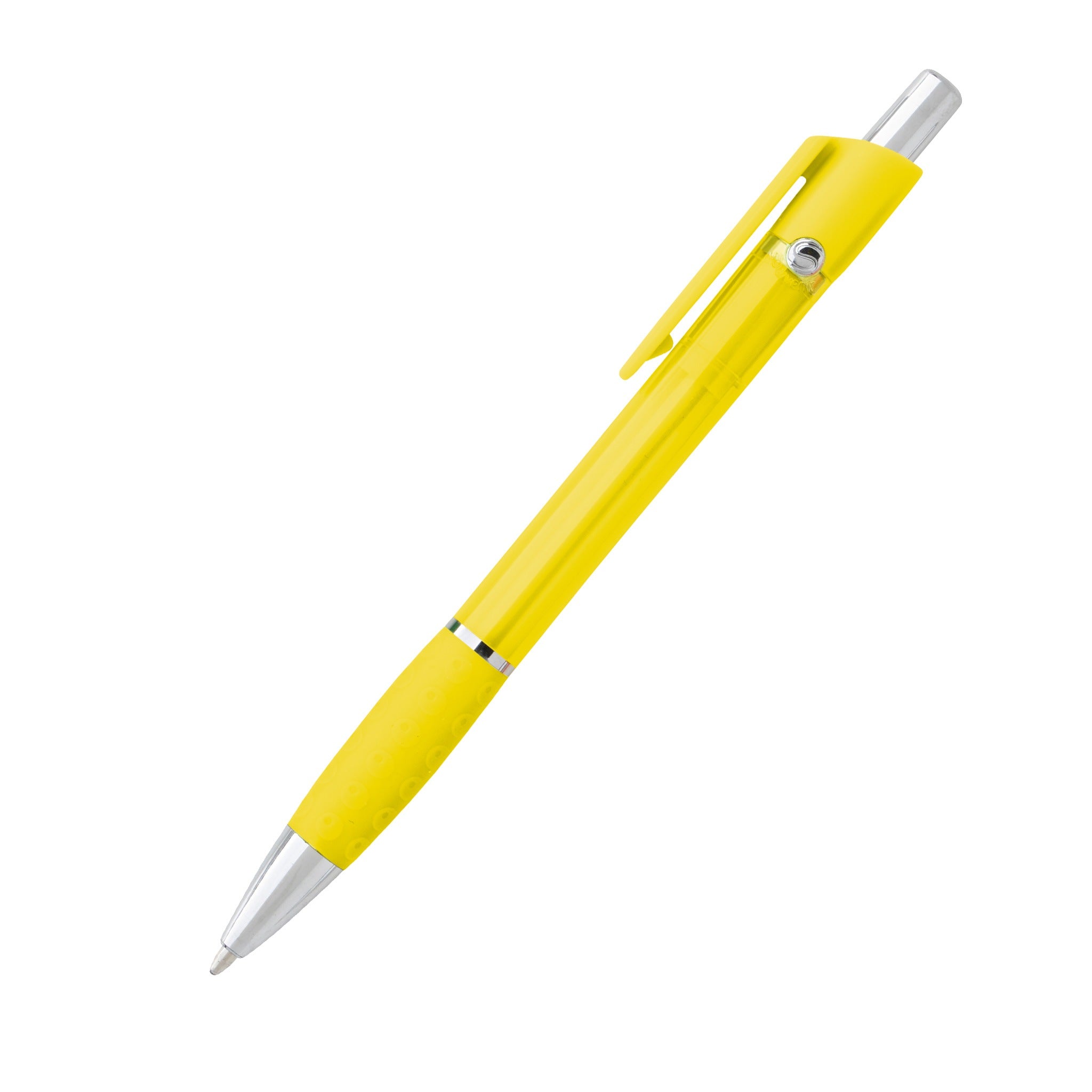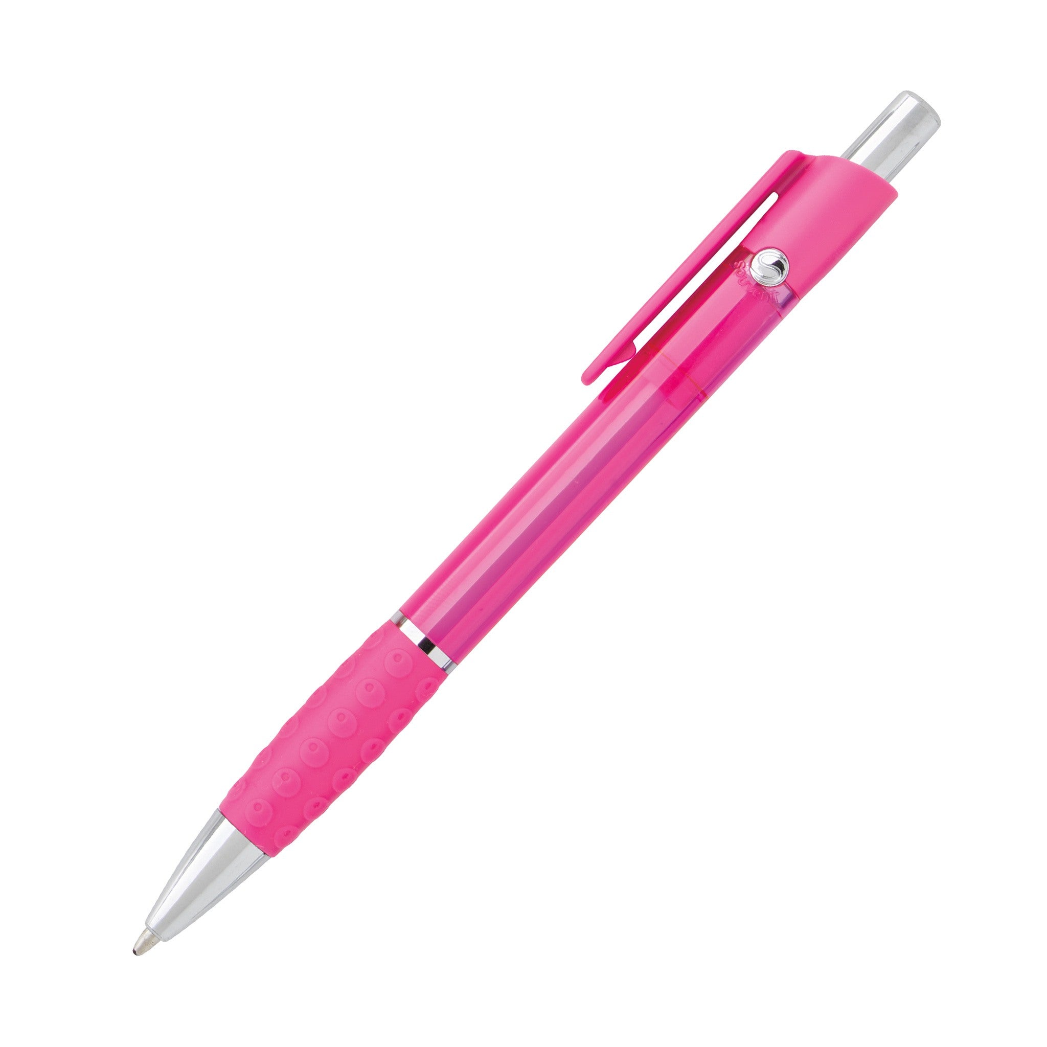 Dare to be bold and unique with Bic Translucent Anthem pens! This pen features a 1.2mm black ink ballpoint, letting you create clear, bold lines each and every time. Its plastic barrel comes in vibrant, translucent colors with a uniquely textured rubber grip and chrome-plated clip and trim. It also includes the BIC Boy icon molded into metal rivets on both sides of the barrel. Add your logo on this pen's barrel and clip and you have a wonderful promotional pen for employee and staff use or for distribution at tradeshows, advertising, and awareness campaigns.