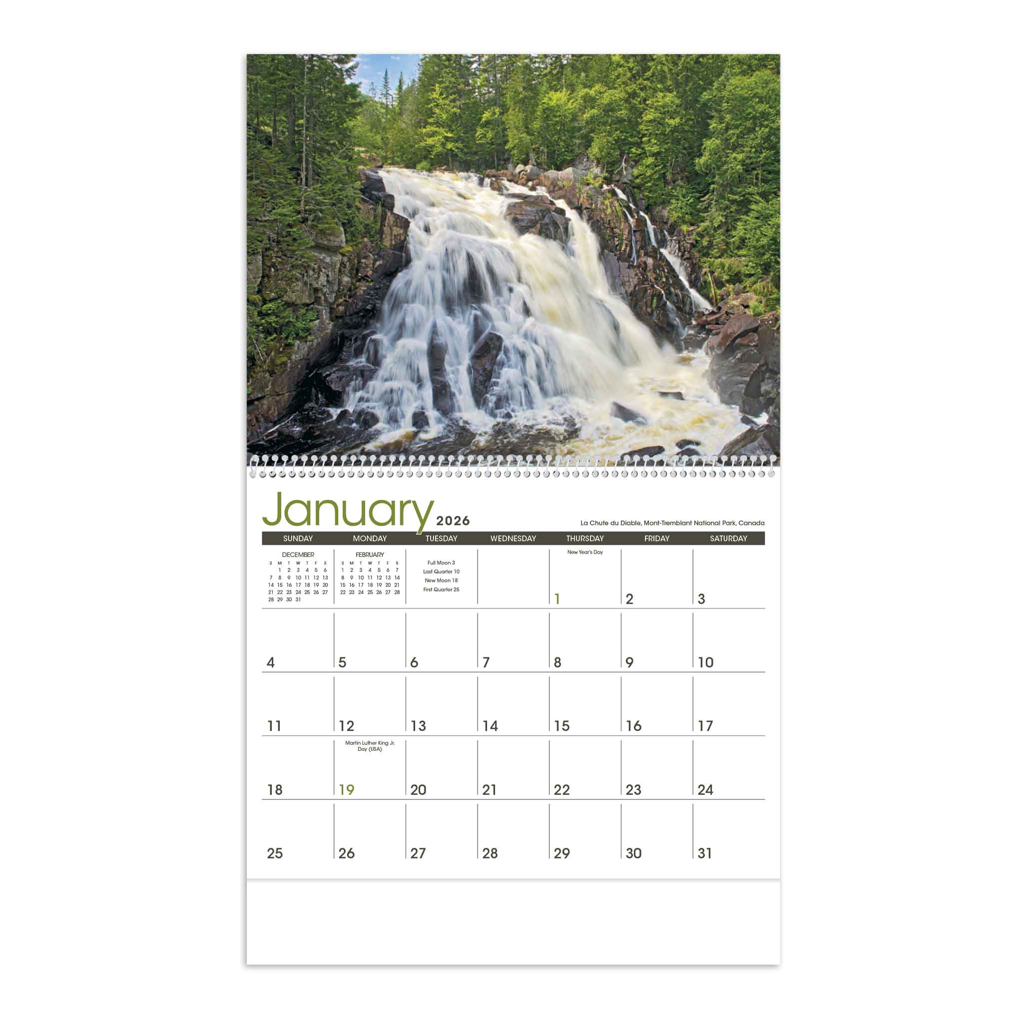 - Breathtaking scenic waterfalls from around the world grace this calendar.