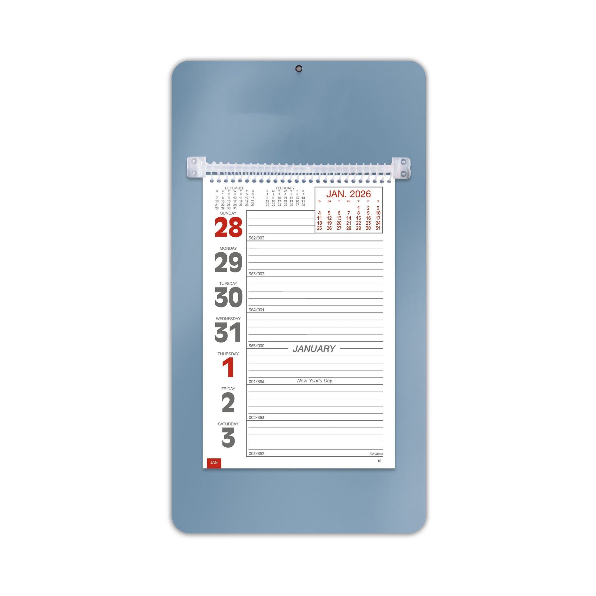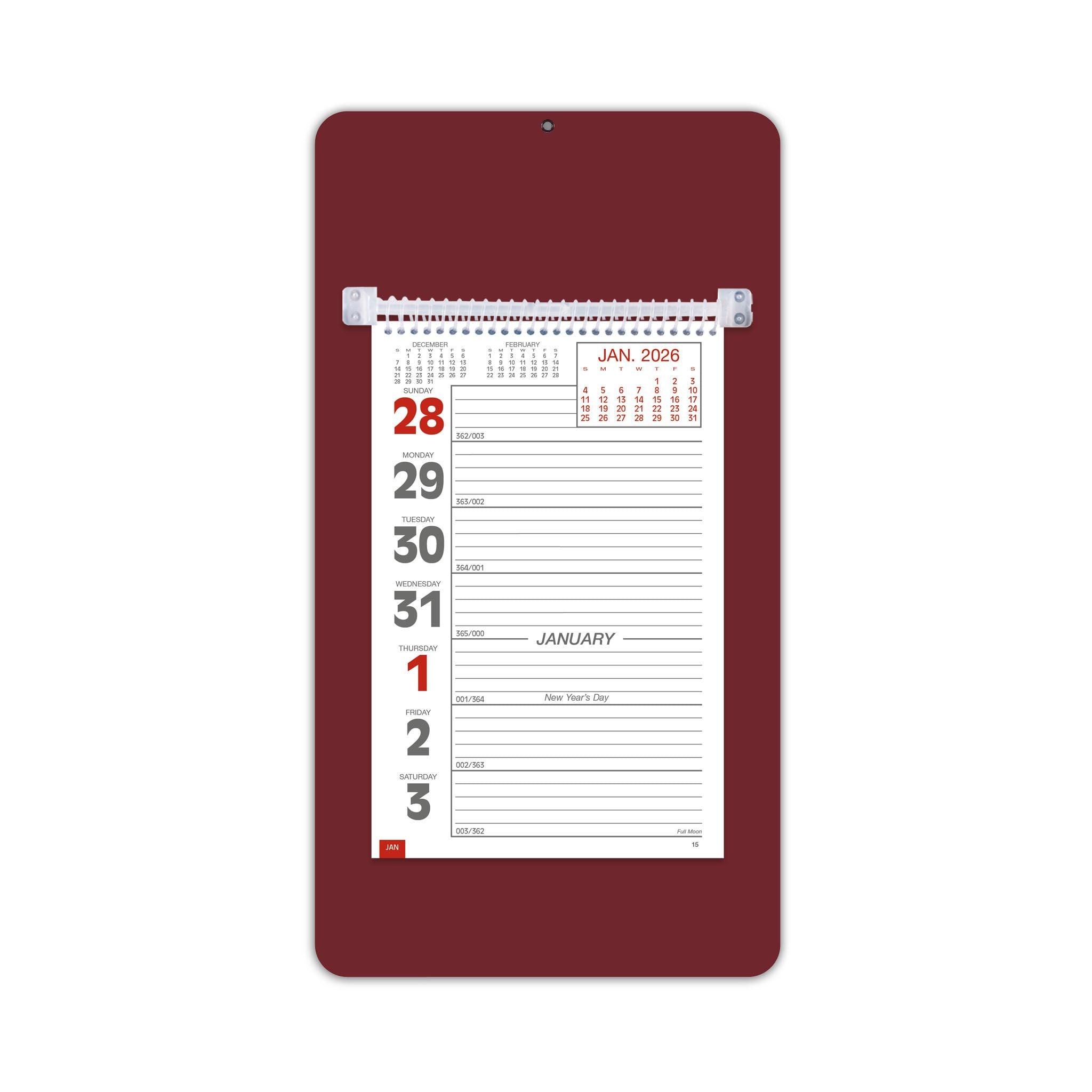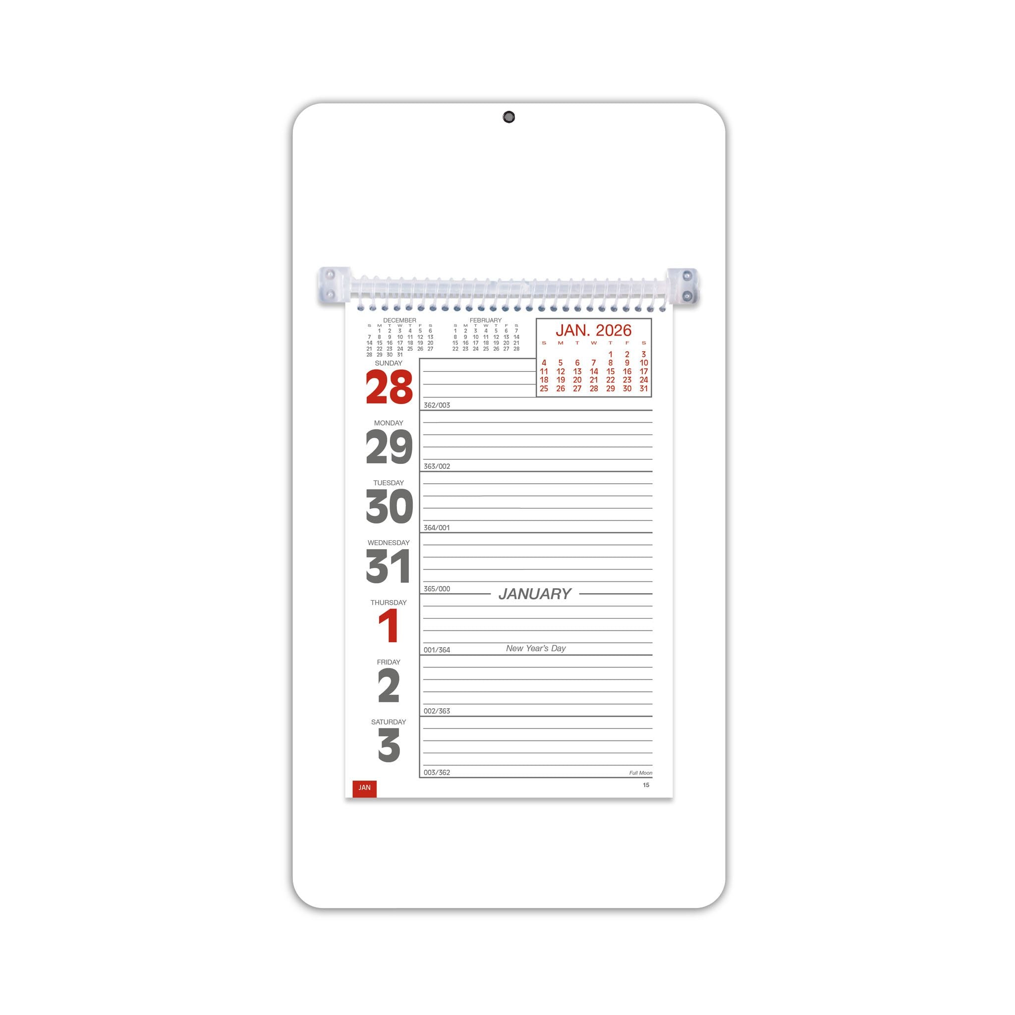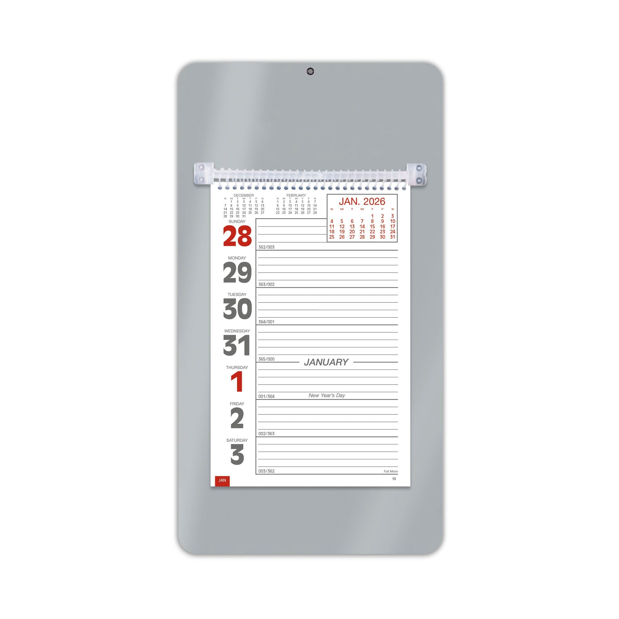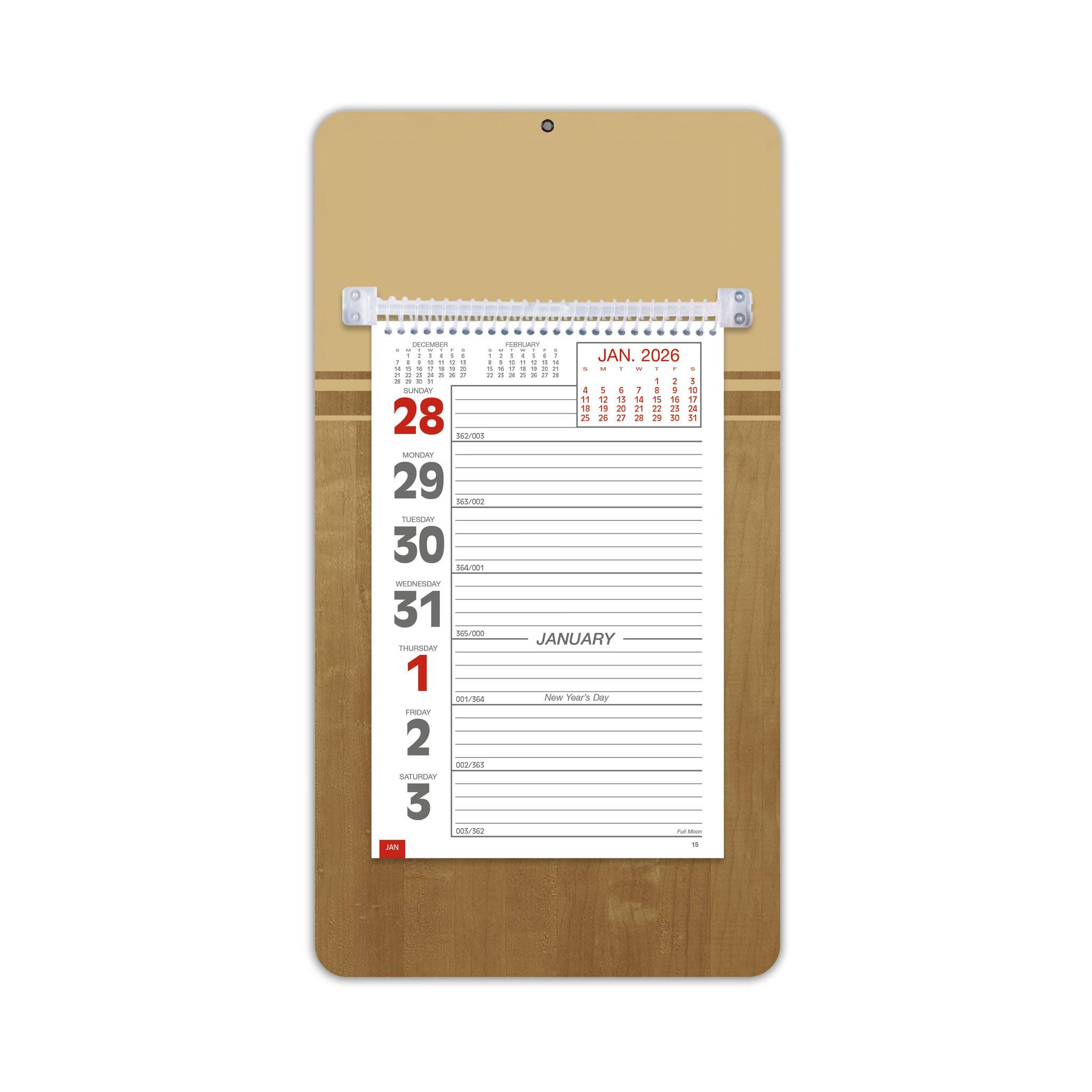 - This handy model has a sturdy mount board with a hanging hole, along with ruled daily memo space.